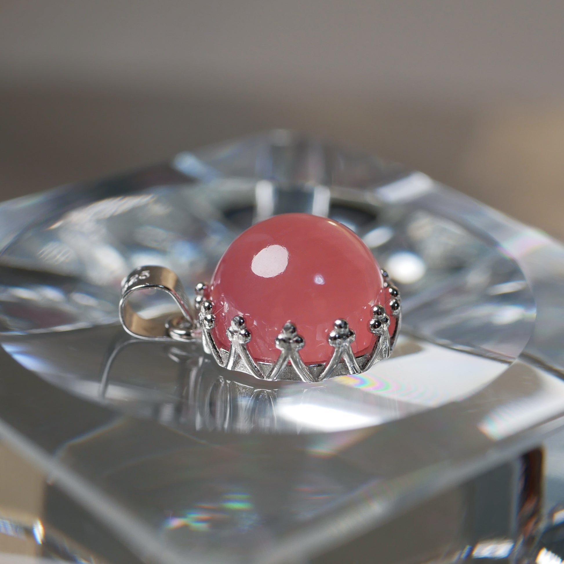 ふっくら愛らしい北海道産ロードクロサイト。制作過程を紹介しております。積丹ローズともいわれており、濃い色合い・テリの良さが大輪のバラのよう。原石を惜しげもなく削り、クォリティを高めております。非常に見ごたえのある作品です。