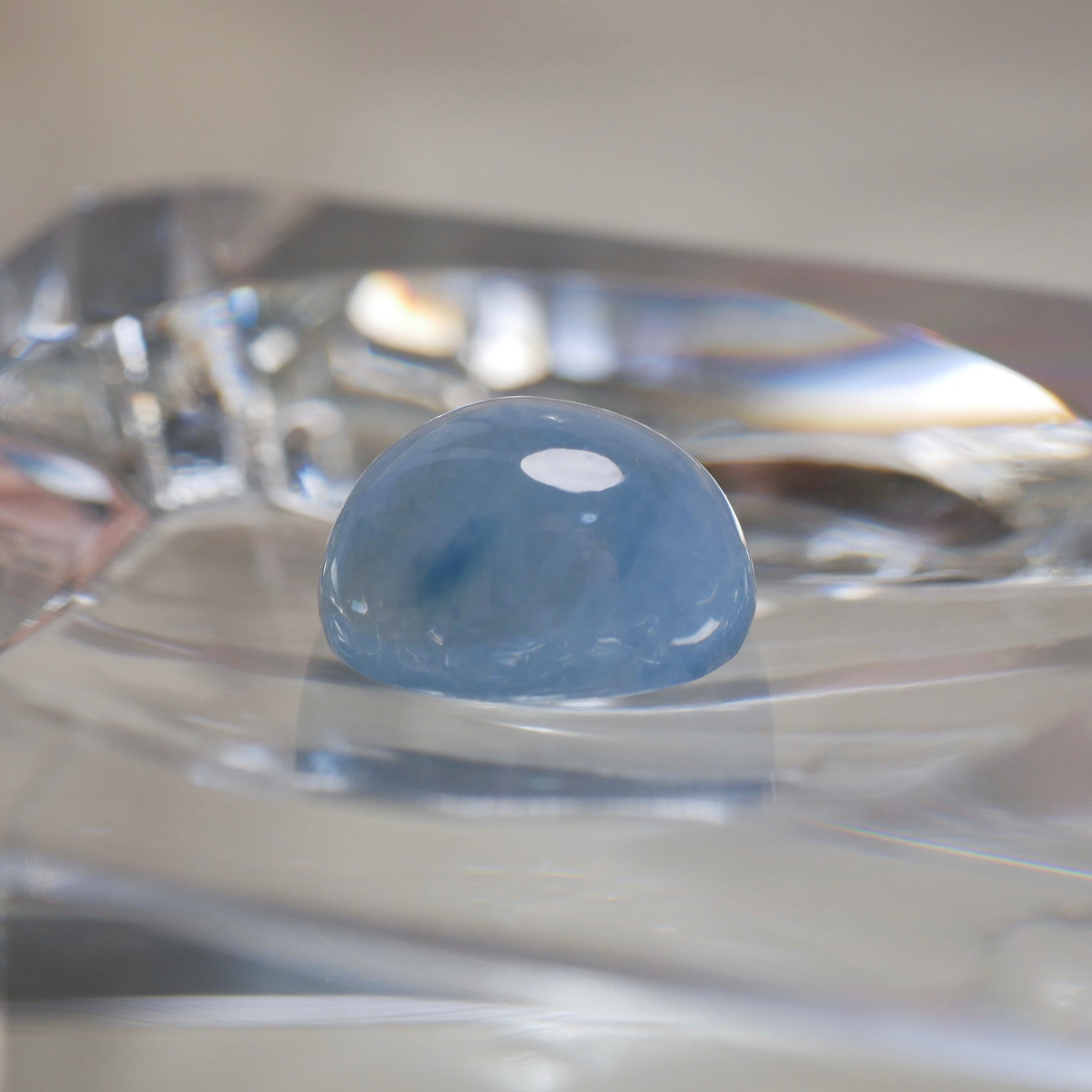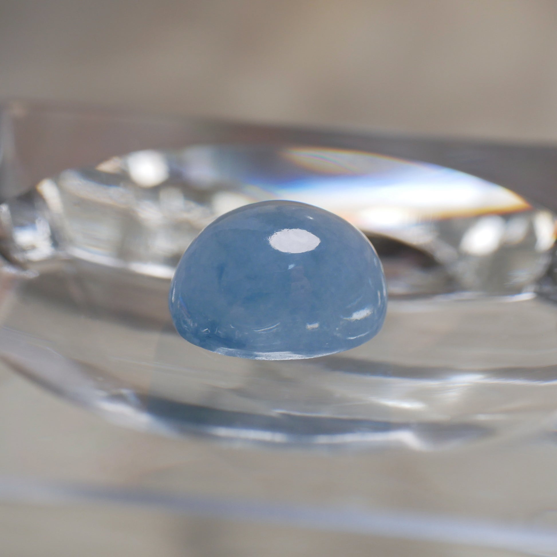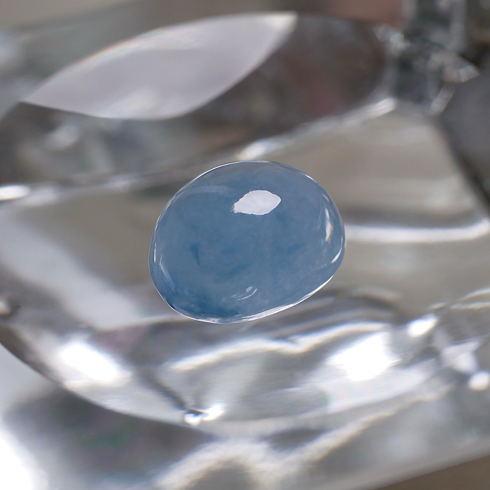透光性の高さを感じさせる瑞々しい風合い・青味のうつくしさ、ふっくらとしたハイカボション、素晴らしいピースです。この産地につきものの暗色系不純物も殆どみられません。特別な彫金ジュエリーのメインピースにおすすめです。