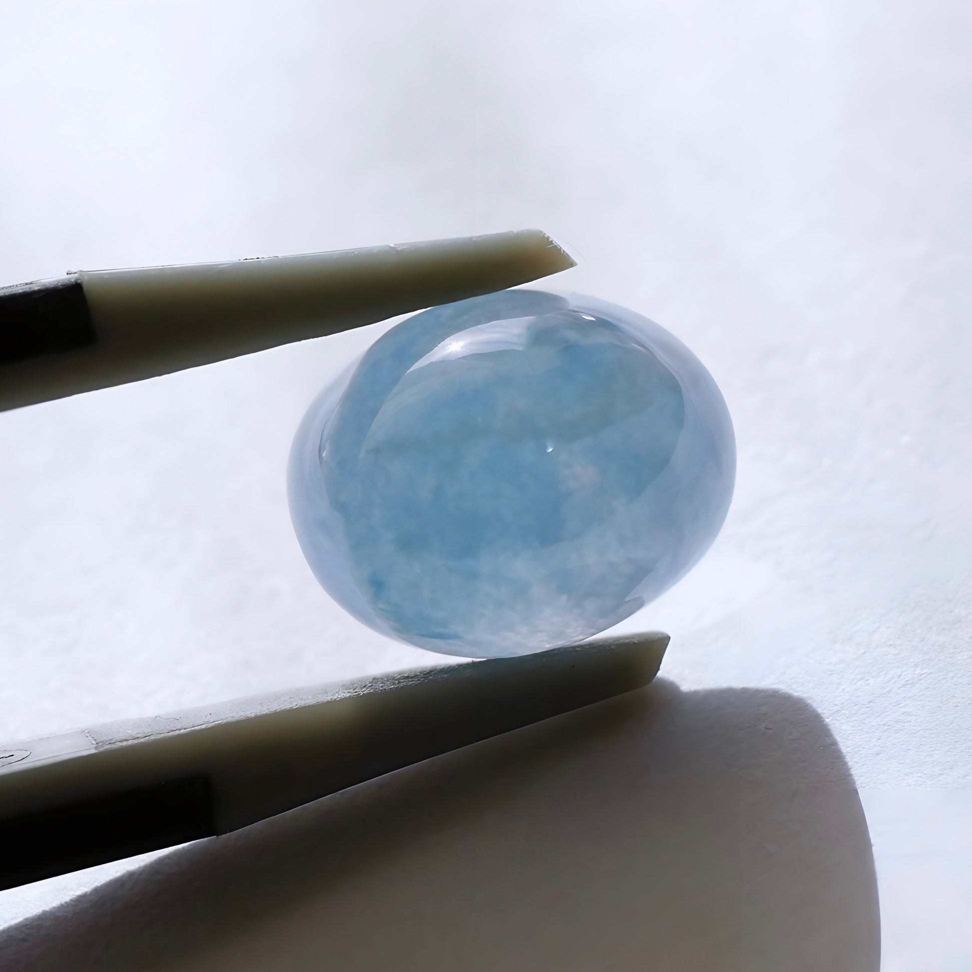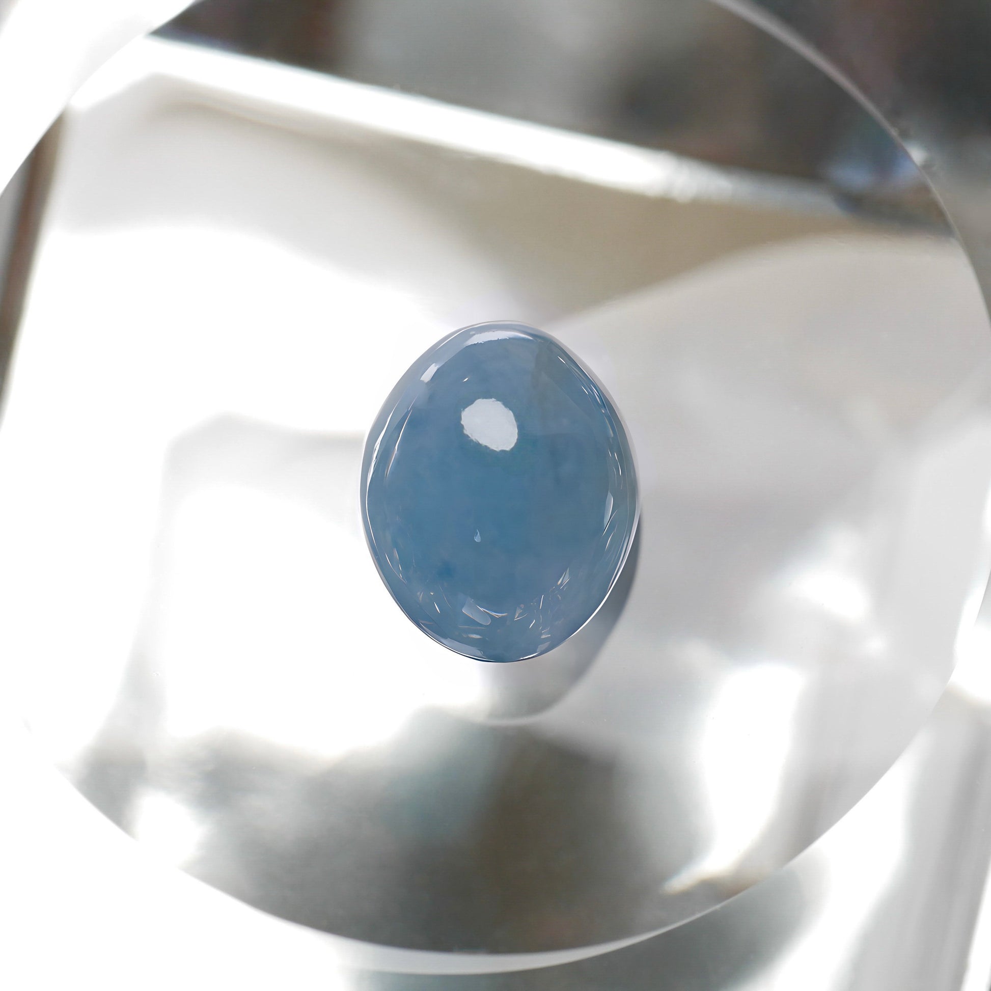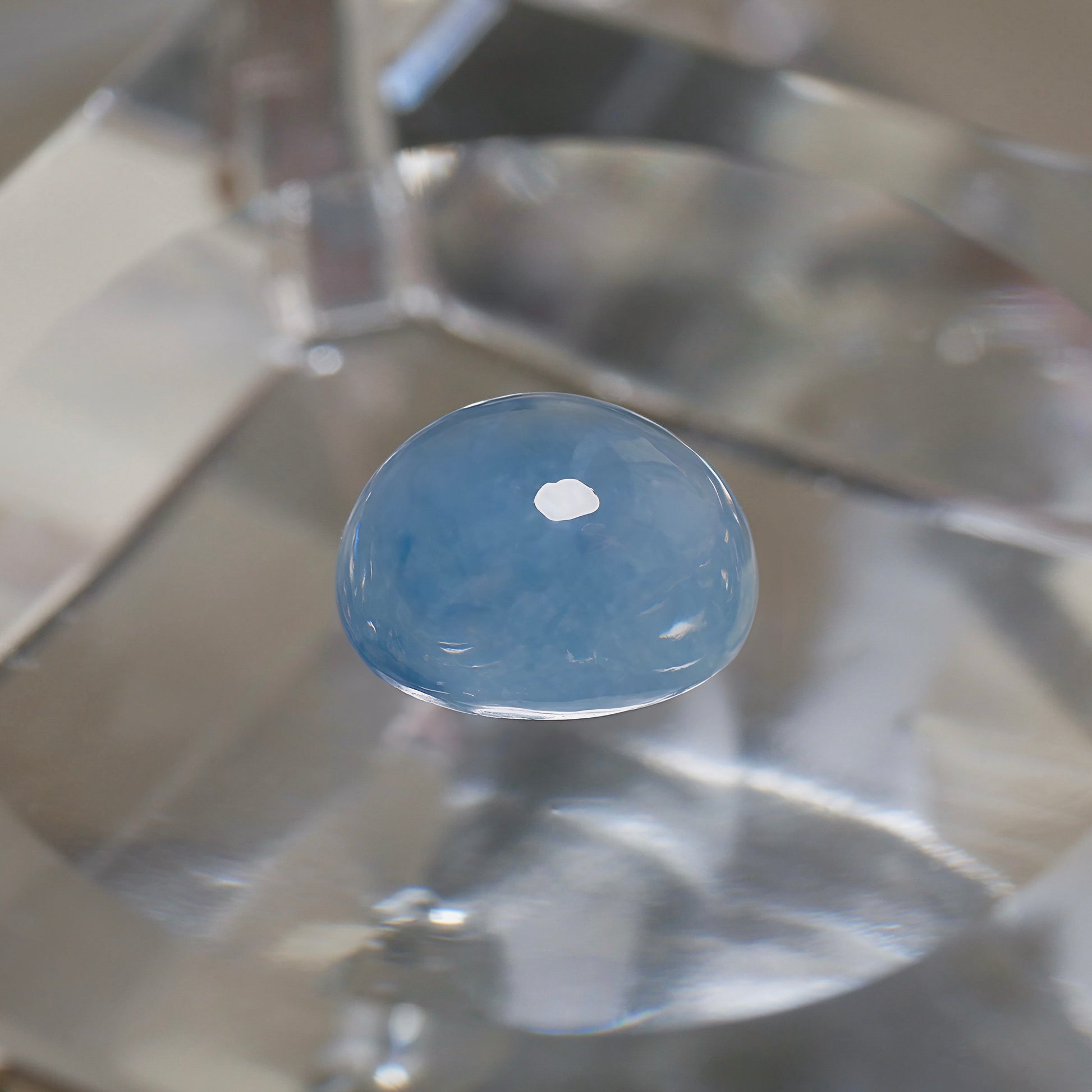 透光性の高さを感じさせる瑞々しい風合い・青味のうつくしさ、ふっくらとしたハイカボション、素晴らしいピースです。この産地につきものの暗色系不純物も殆どみられません。特別な彫金ジュエリーのメインピースにおすすめです。