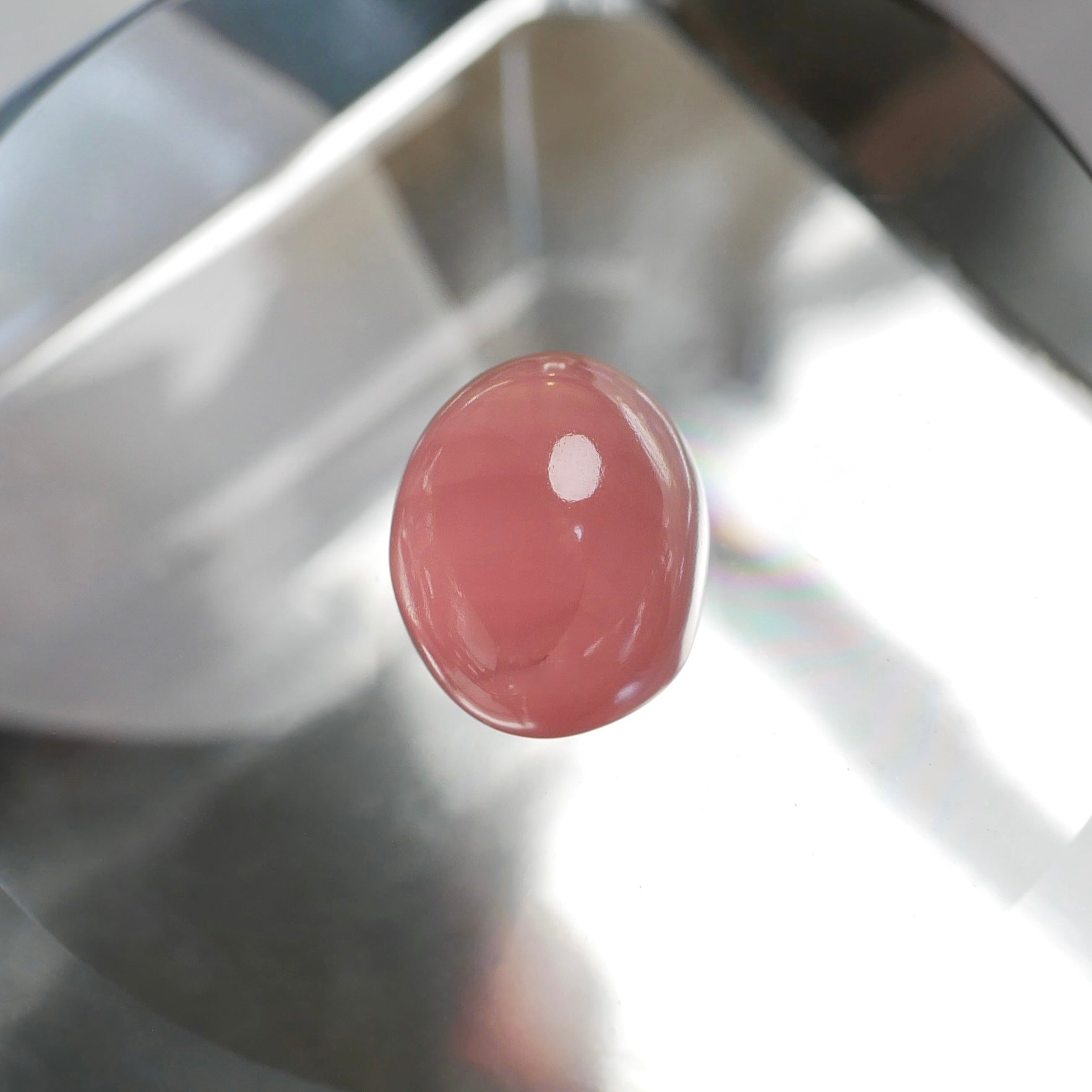 北海道産ロードクロサイト、ふっくらとしたハイカボションルース。濃い色合い・テリの良さ、非常にうつくしいピースです。原石を惜しげもなく削り、クォリティを高めております。特別な彫金ジュエリーのメインピースにおすすめです。