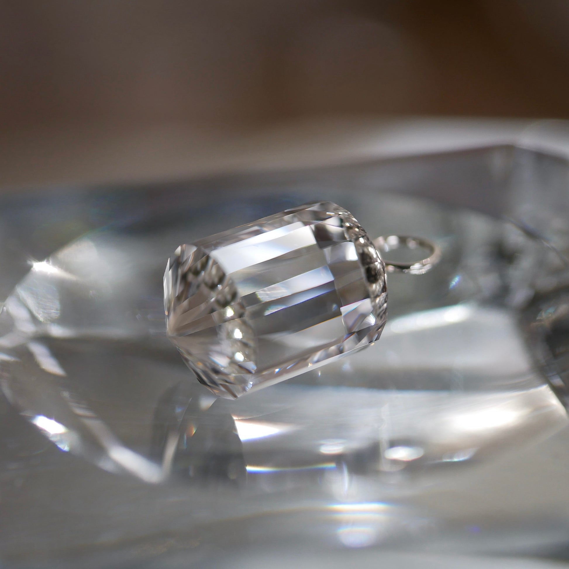 海外産に比べ 石目や不純物が多い国産水晶ですが、贅沢に原石を使用、切削し、インクルージョンを避けクラリティを高めております。国産水晶の水のような煌めきは格別です。silver925ヒートン付き、お手持ちのチェーンを通しペンダントに。