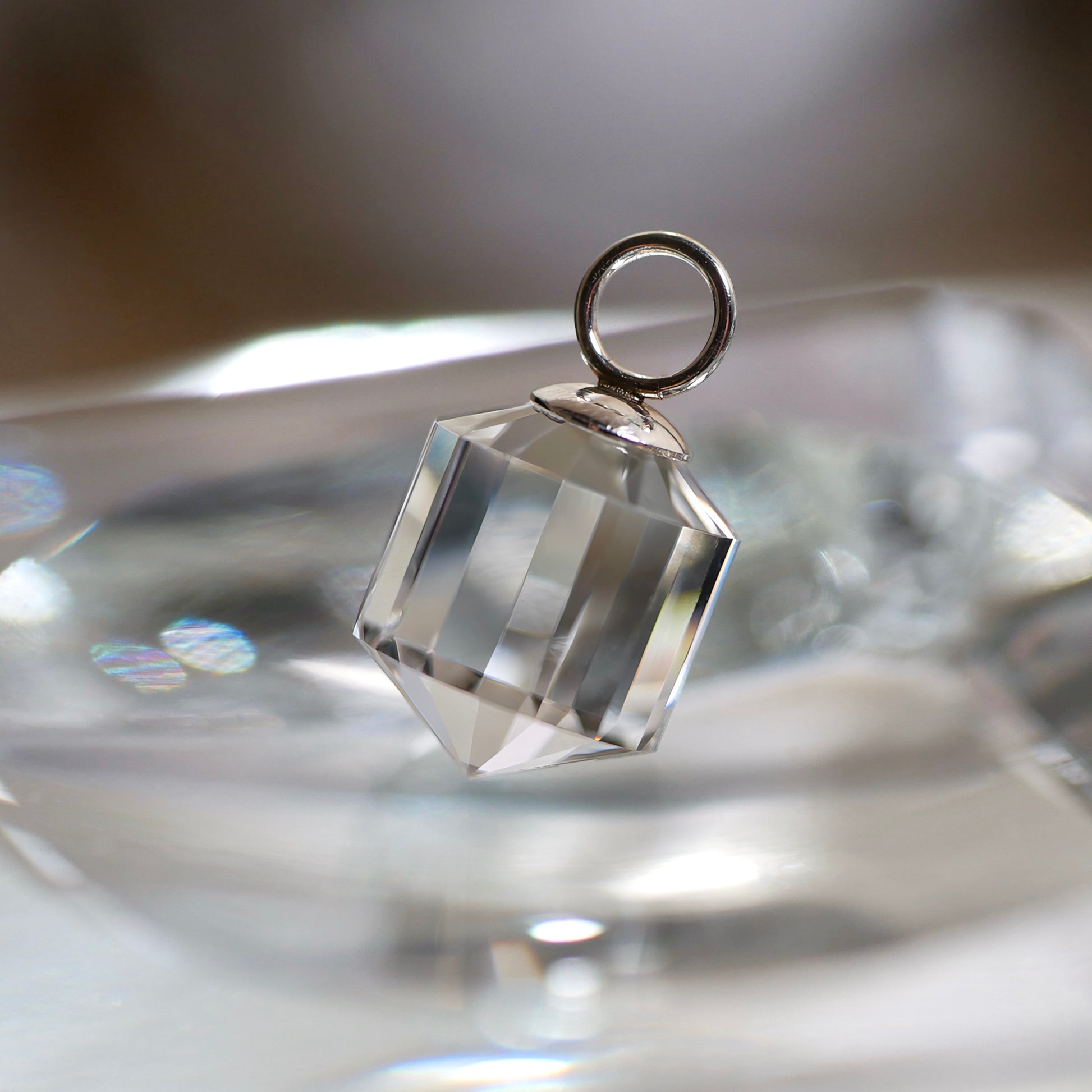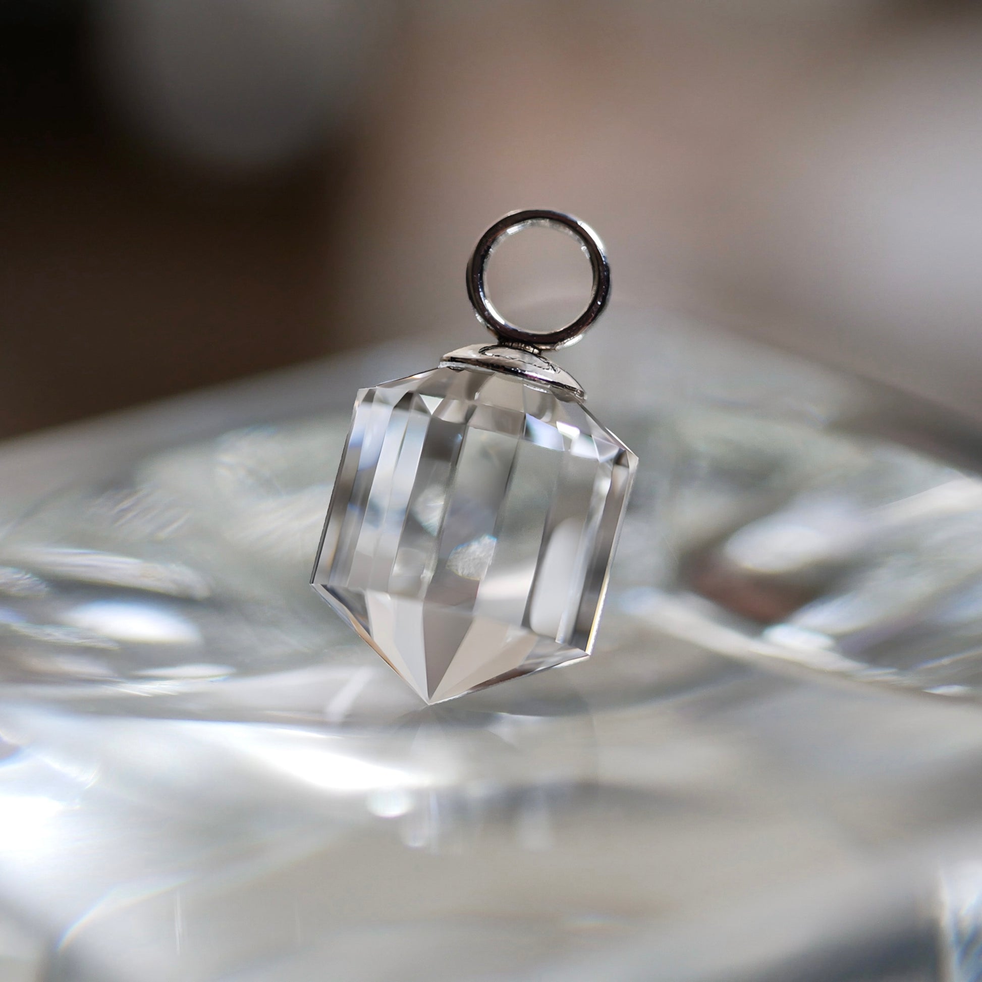 海外産に比べ 石目や不純物が多い国産水晶ですが、贅沢に原石を使用、切削し、インクルージョンを避けクラリティを高めております。国産水晶の水のような煌めきは格別です。silver925ヒートン付き、お手持ちのチェーンを通しペンダントに。
